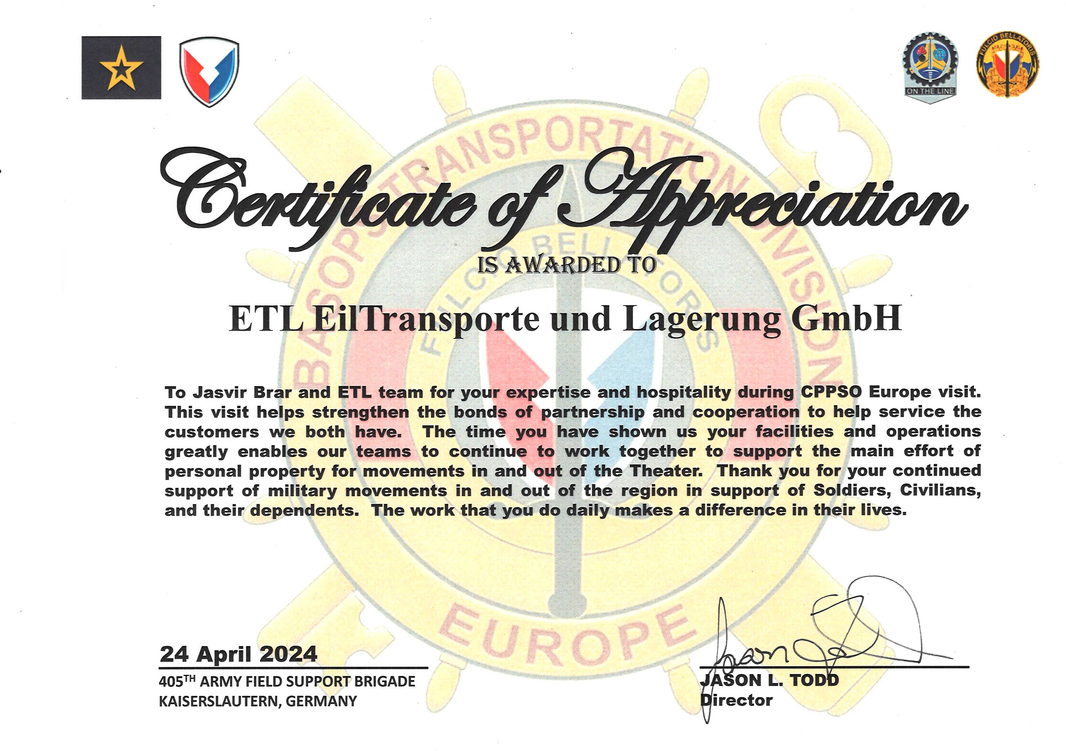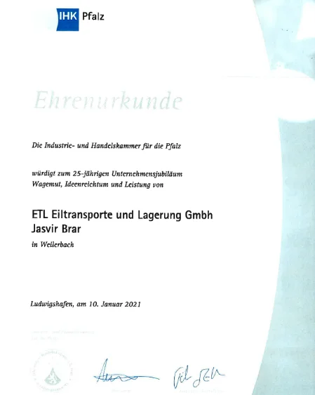 Your move is in best hands with ETL - from/to Kaiserslautern Area!
